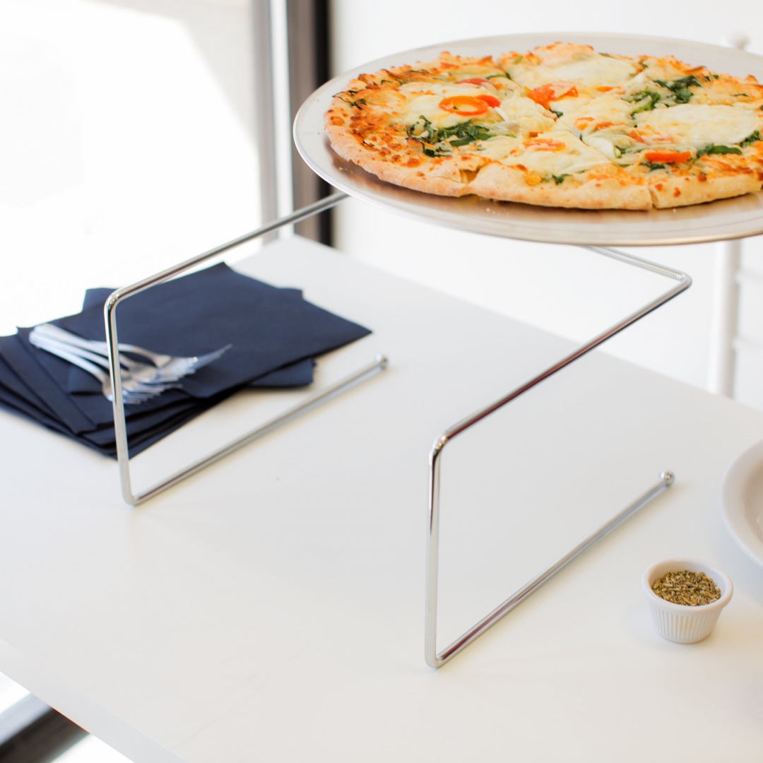 Este Suporte para Tabuleiros de Pizza permite que você consiga uma apresentação visualmente atraente das suas pizzas sem desperdiçar o espaço precioso na mesa. Os seus clientes terão mais espaço para desfrutar da sua refeição e uma visão clara das suas deliciosas pizzas.