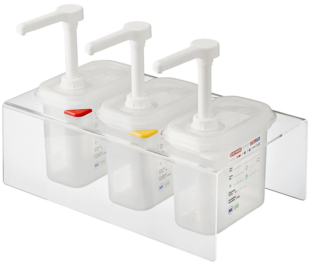 A construção translúcida de polipropileno dos Dispensadores de Molhosresiste a manchas e odores. Além disso, permite uma boa visibilidade do produto, garantindo que você identifique facilmente o seu conteúdo e quantidades para fins de recarga.
