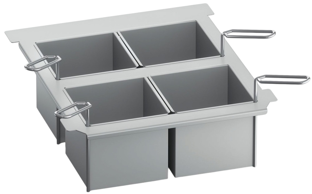 O Conjunto de 4 Cestos Não Perfurados Com Tampa é ideal para cozinhar, fritar e manter pequenas quantidades de comida quentes em restaurantes, hotéis e áreas de serviço.