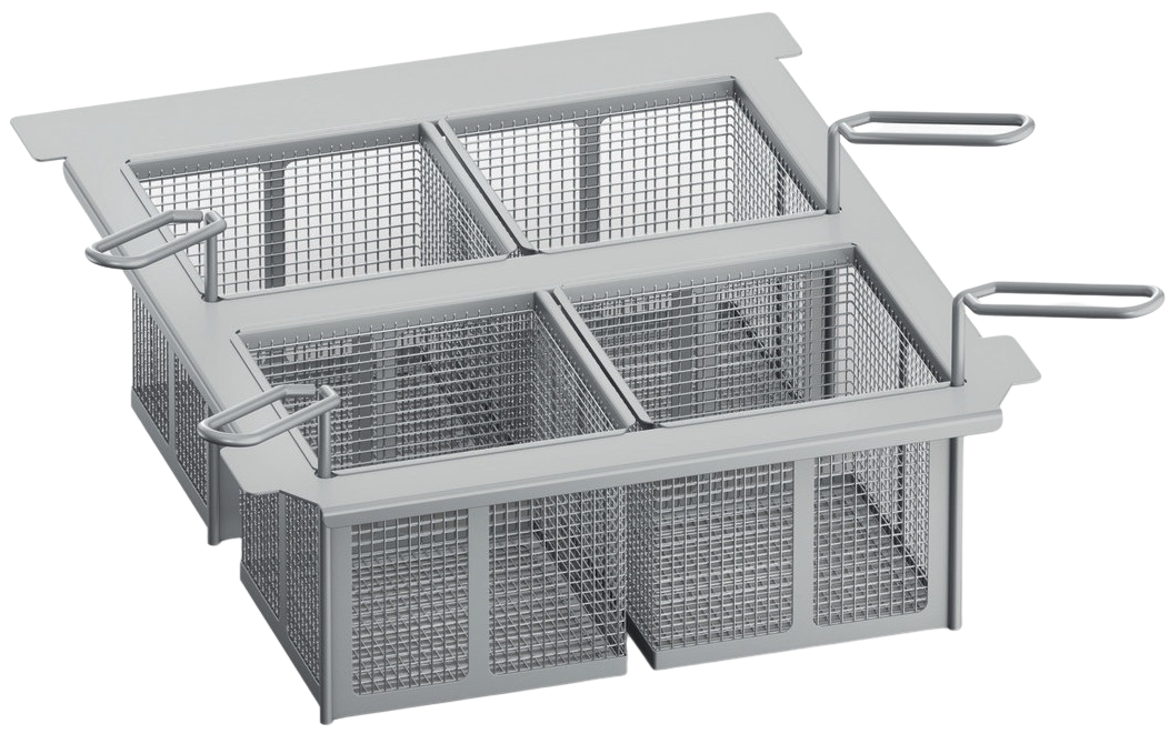 O Conjunto de 4 Cestos para Fritar é ideal para cozinhar, fritar e manter pequenas quantidades de comida quentes em restaurantes, hotéis e áreas de serviço.