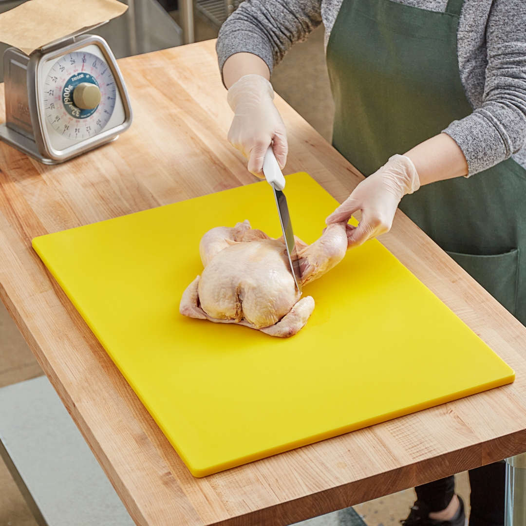 As Tábuas de Corte podem ser usadas para cortar qualquer alimento, no entanto é importante adotar um sistema de código de cores no seu restaurante para evitar a contaminação cruzada. Assim:
