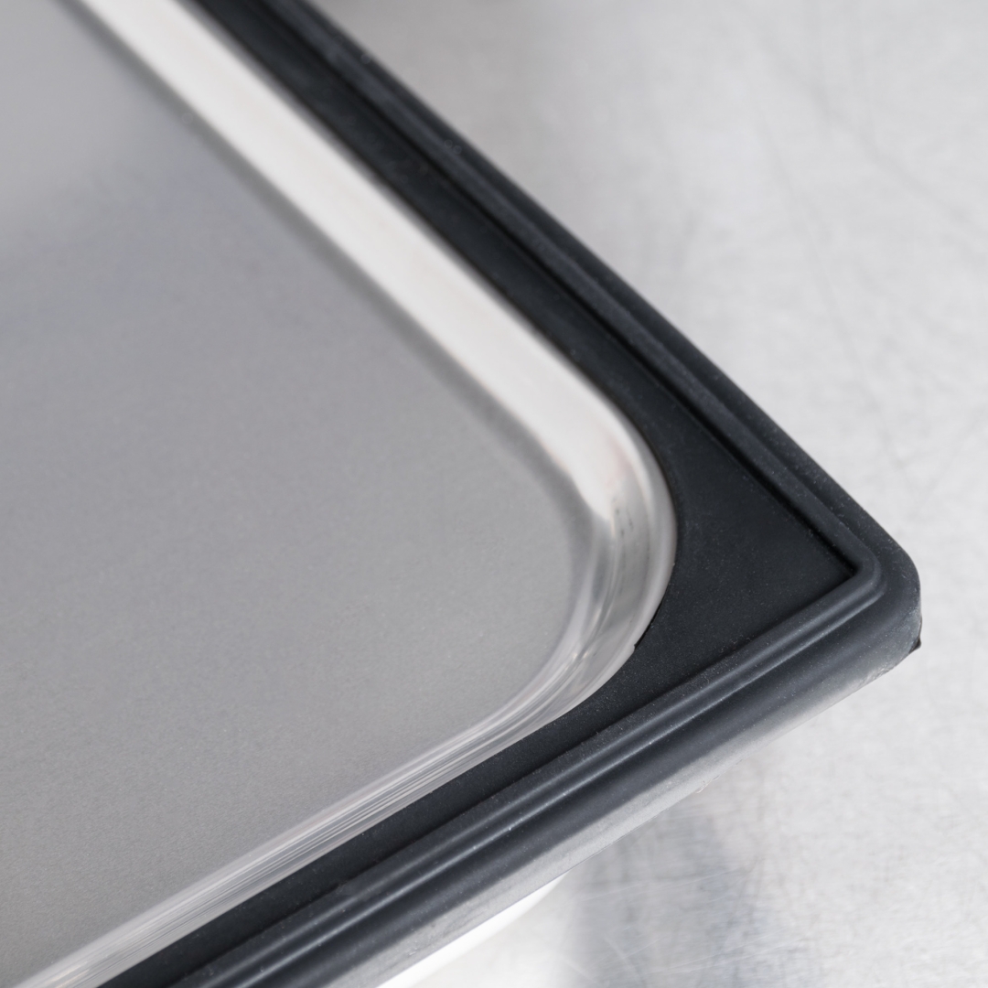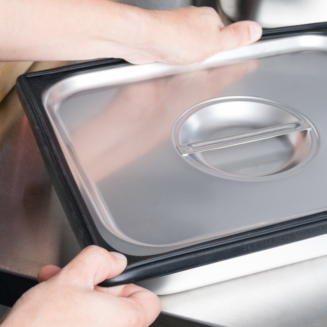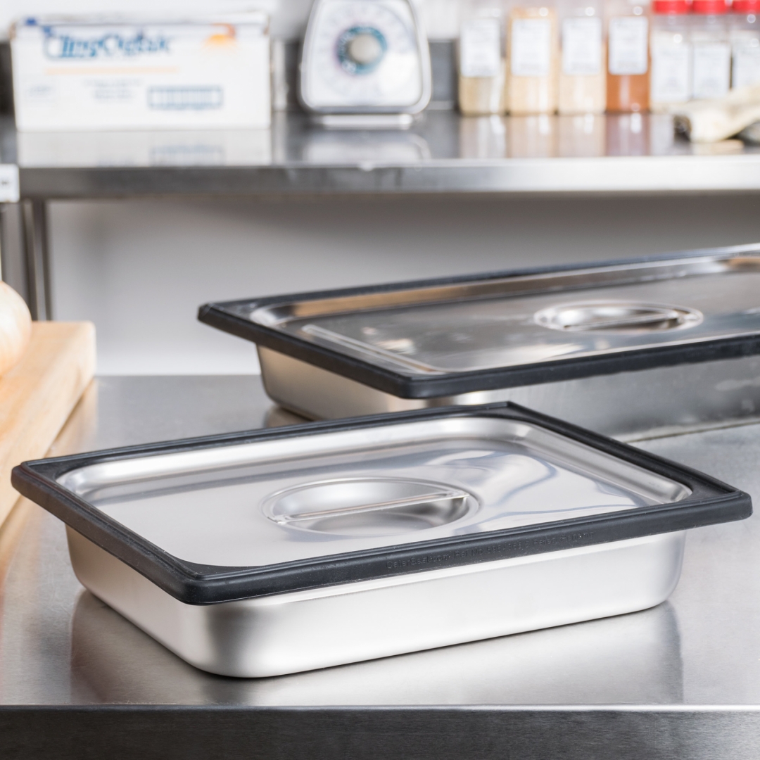 A Banda Seladora de Silicone para Recipientes (Containers) patenteada pela Vollrath é uma maneira revolucionária de manter os alimentos seguros durante o seu armazenamento e transporte.