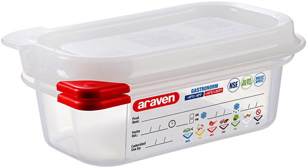 Estas Caixas Herméticas possuem uma etiqueta que permite escrever informações importantes sobre o produto, que são essenciais para cumprir com as diretrizes de segurança alimentar. O rótulo inclui espaço para registar o tipo de alimento, a data e a hora, o uso por data e a identificação do dia da semana.