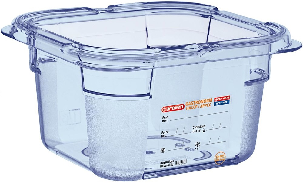 As Caixas Herméticas possuem uma etiqueta que permite escrever informações importantes sobre o produto, que são essenciais para cumprir com as diretrizes de segurança alimentar. O rótulo inclui espaço para registar o tipo de alimento, a data e a hora, o uso por data e a identificação do dia da semana.