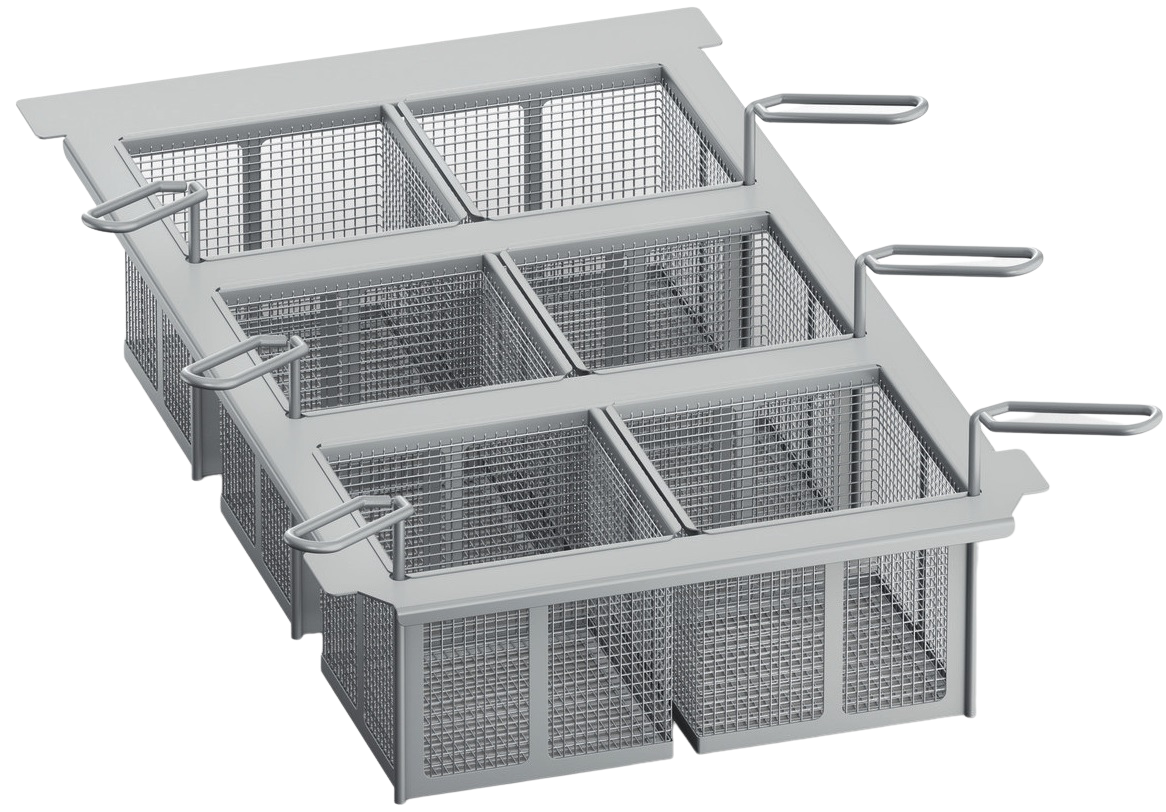 O Conjunto de 6 Cestos para Fritar é ideal para cozinhar, fritar e manter pequenas quantidades de comida quentes em restaurantes, hotéis e áreas de serviço.