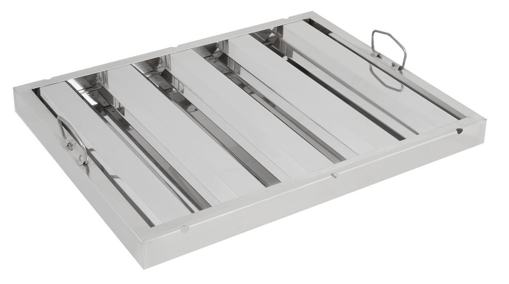 Fabricado em aço inoxidável, estes Filtros de Lâminas Tipo Churrasqueira são um complemento essencial para qualquer cozinha, porque são constituídos por lâminas que promovem a circulação do ar em ziguezague melhorando a filtragem do ar.