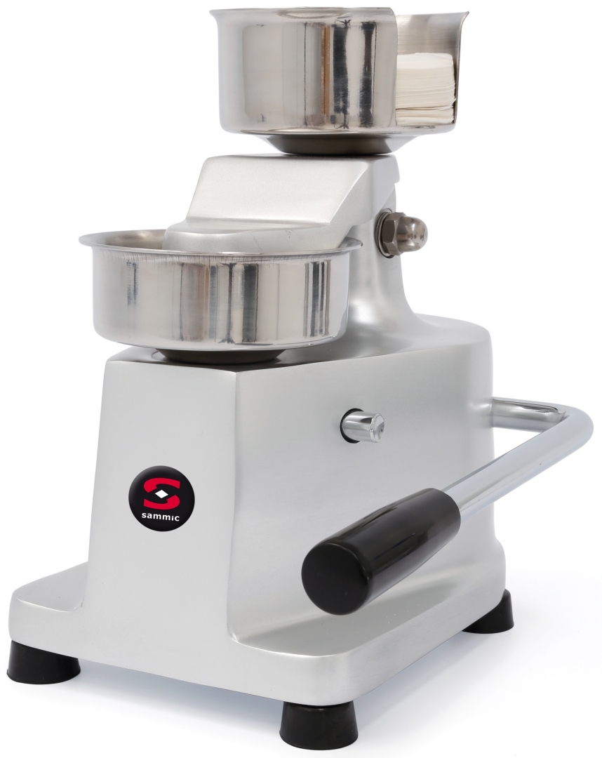 A Formadora de Hambúrgueres PH-5 fabricada pela Sammic foi projetada para uso profissional. Fácil de utilizar e manter, esta máquina permite moldar hambúrgueres rápida e higienicamente com o dispensador de celofane protector incorporado.