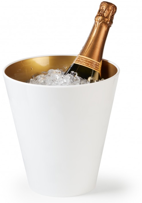 Com capacidade para acomodar uma garrafa, este Frappé Bicolor fabricado pela Pujadas é perfeito para qualquer festa ou ocasião especial. Mantenha o vinho e o champagne dos seus clientes gelados nesta taça de gelo com o interior em dourado.