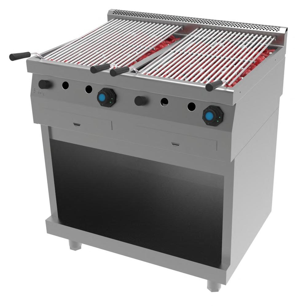 O Grelhador de Pedra Lávica PLG60/2 permite recriar a cozedura tradicional na brasa, com um controlo mais preciso da temperatura, uma limpeza mais fácil e uma maior segurança do operador. Este grelhador possui as seguintes características: