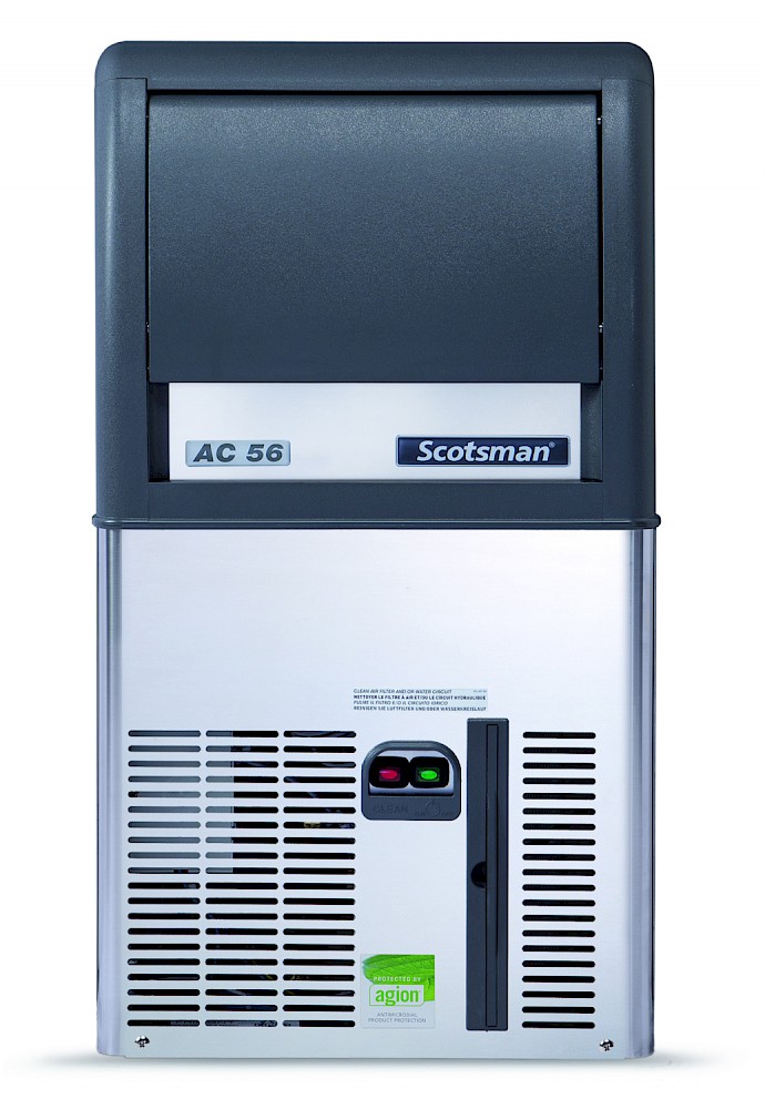 Fabricado pela Scotsman Ice Systems, o modelo ACM56 AS produz cubos de gelo cristalinos Gourmet individuais e incorpora:
