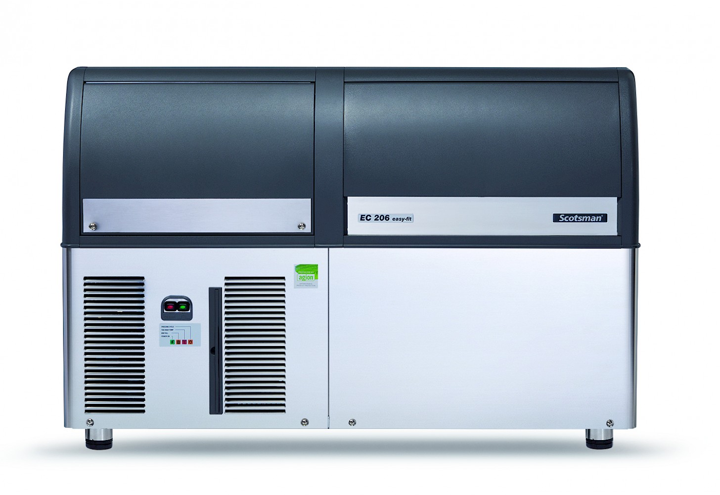 Fabricado pela Scotsman Ice Systems, o modelo ECM206 AS produz cubos de gelo cristalinos Gourmet individuais e incorpora: