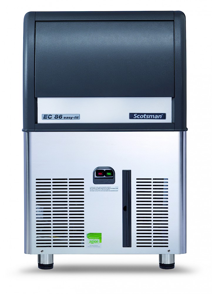 Fabricado pela Scotsman Ice Systems, o modelo ECM86 AS produz cubos de gelo cristalinos Gourmet individuais e incorpora: