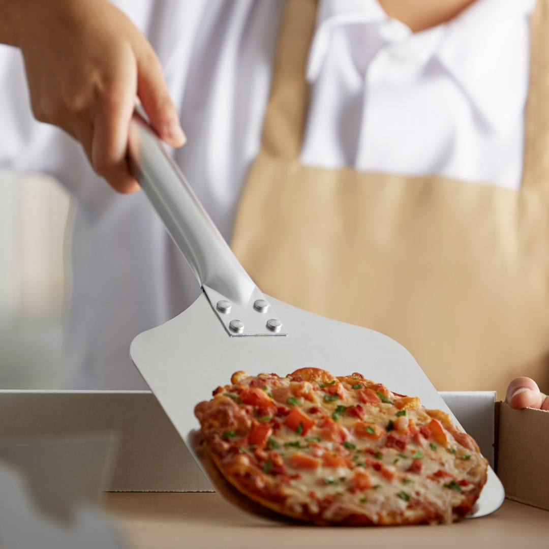 As suas pizzas deslizarão facilmente quentes e prontas para fora do forno com esta Pá Quadrada em Alumínio para Pizzas.