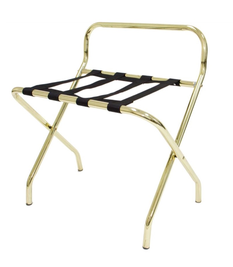 O Suporte de Malas com Apoio Dourado da JVD é elegante e essencial para qualquer quarto de hotel.