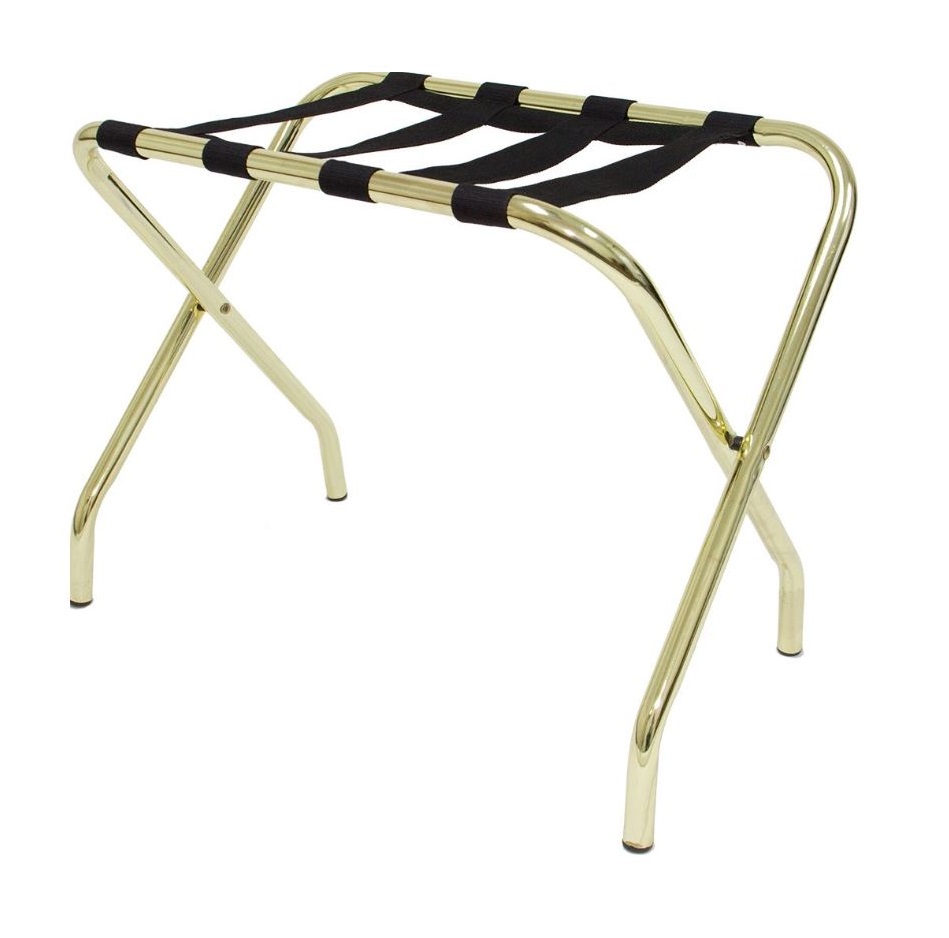 O Suporte de Malas Dourado da JVD é elegante e essencial para qualquer quarto de hotel.