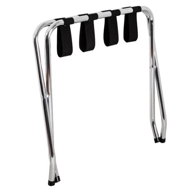 Estes suportes de malas são resistentes e práticos, com robustas correias para acomodar a mala de forma segura e uma construção resistente em tubo de aço inoxidável.