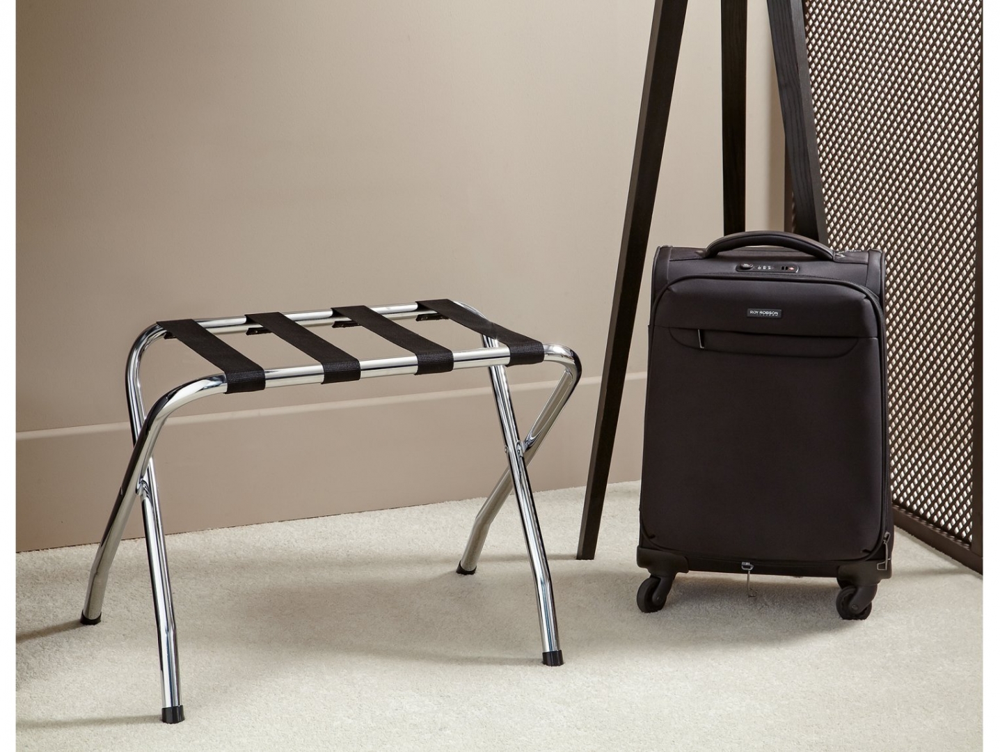 O Suporte de Malas da JVD é elegante e essencial para qualquer quarto de hotel.