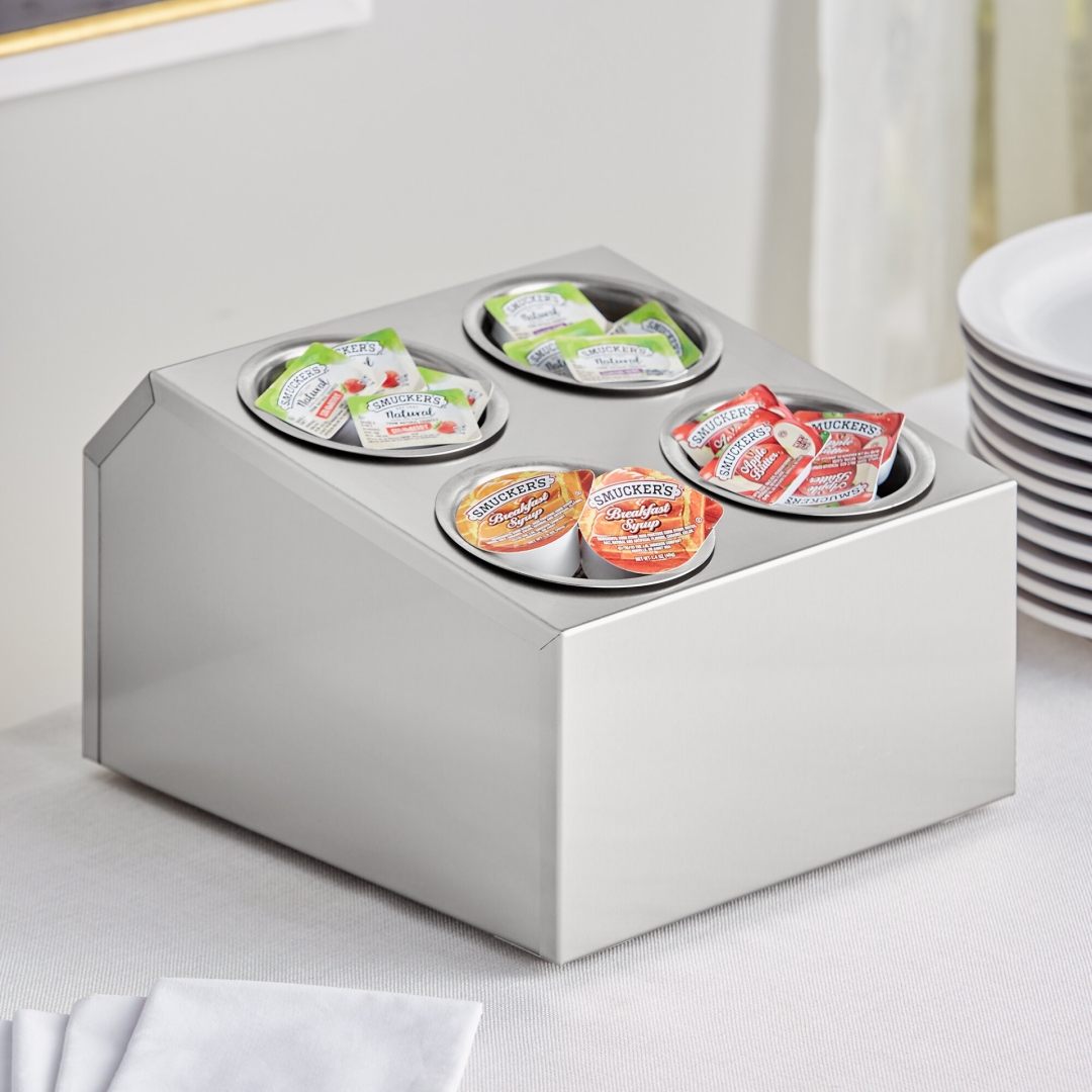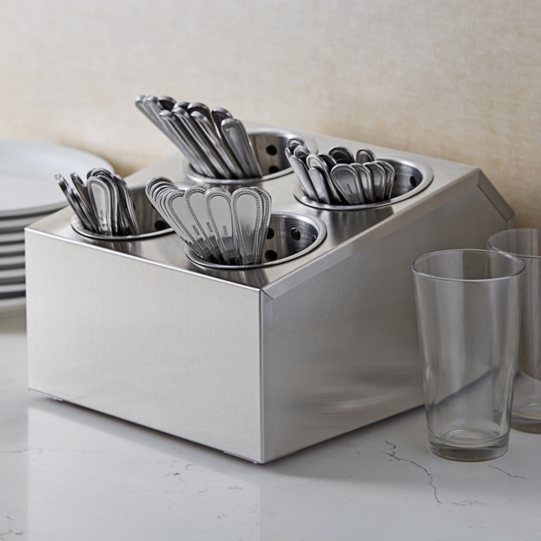 O Suporte para Talheres com 4 Divisórias é perfeito para restaurantes, bares, cafés e linhas de buffet e, mantém os seus talheres à mão dando aos seus clientes a impressão de limpeza e qualidade.